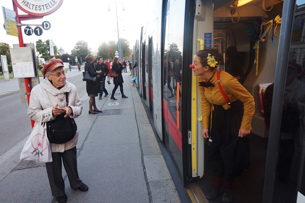 Man kann das nur als Fügung bezeichnen. Dank des Vertrauens und der Mithilfe der Wiener Linien war es uns möglich, diesen öffentlichen Raum der Straßenbahn, der eigentlich durch Abgrenzung und schnelles „von A nach B kommen“ gekennzeichnet ist, in eine Spielwiese zu verwandeln und den vielen Passagieren zumindest Anreize das eigene Engagement für den Frieden schmackhaft zu machen. Und das nun heuer zum vierten Mal!